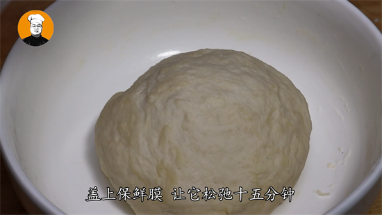 6、碗中放入适量干面粉,再加入小半勺食盐增加筋性,然后搅拌均匀,再放入凉水,搅成面絮,做饺子的面要和得柔软一些,做面条的面要和的硬一些。再上手揉成光滑面团,然后盖上保鲜膜,让它松弛十五分钟