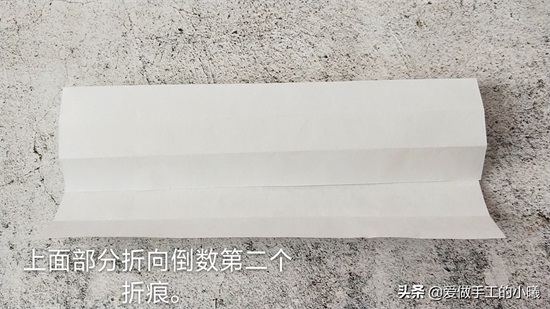 把下面部分打开。上面部分折向倒数第二个折痕。