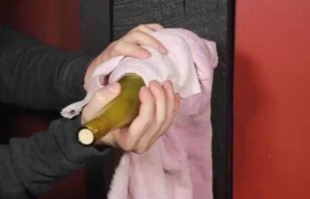 2、将瓶底靠在墙面或树木上,瓶身与墙面或树木保持垂直状态,手据瓶颈处,均匀有力的撞击瓶底,瓶塞便会慢慢的被顶出来。如果没有墙壁或树木,你也可以用膝盖或者鞋底来撞击瓶底。