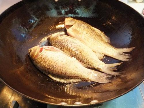 诀窍2、刚刚在上面说了,鲫鱼在炖的时候,一定要将两面煎至金黄,但是有的朋友在煎鲫鱼的时候,鲫鱼肉经常容易粘在锅里,还没等煎呢,鱼肉表面就散发出一股糊味来了,其实这个问题特别容易解决。只需要先将锅烧热,准备一块老姜,用老姜先将锅擦拭一遍,然后再加入凉油润锅,接着将凉油倒出,在锅里撒上一点食用盐。然后再将改好刀的鲫鱼,放在上面,经过这样处理的炒锅,怎么煎鱼也不会糊,也不会粘锅。