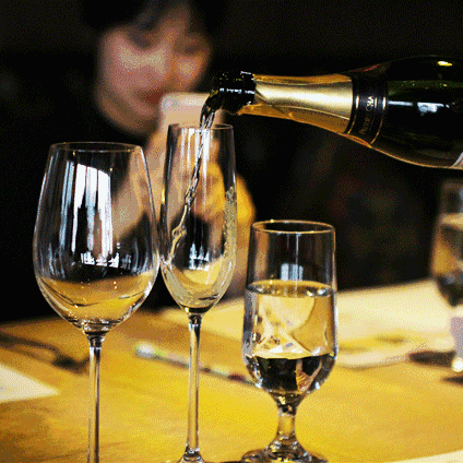 ●香槟/起泡酒,应先倒1/3,待酒中泡沫消退后,再往杯中续斟至七分满即可