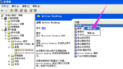 右击右侧的启用Active Desktop,选择属性。