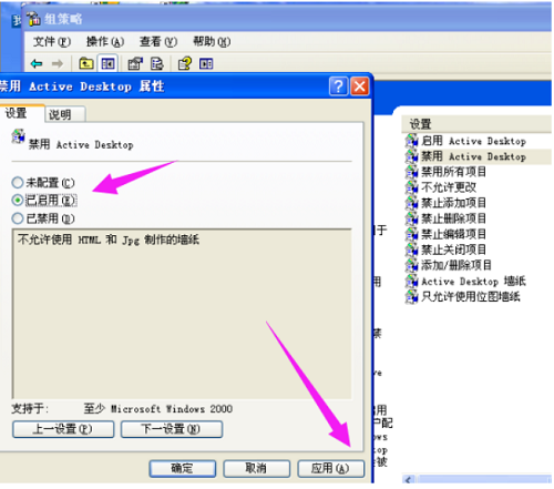 在打开的对话框中选择“已启用”,点击确定。