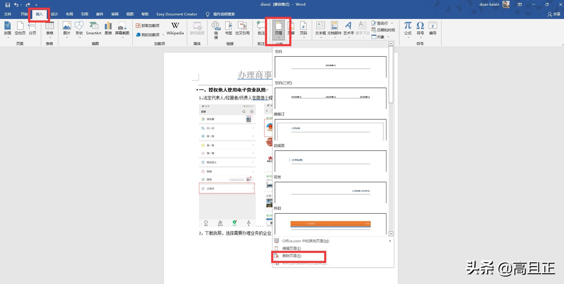 工作中制作Word文件,有时候需要加页眉和页脚。这个动作不难,相信大家都会。但是,有时候却需要把页眉去掉,那么,发现去掉文字很简单,可是那根横线躺在文件顶端死活不动。想把它弄没了,可是需要点技巧的。