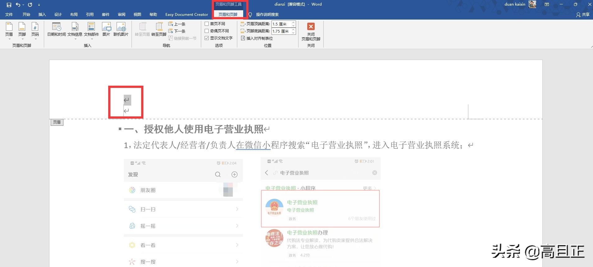 5、发现页眉中的文字已经不见了,,只留下一条实体横线: