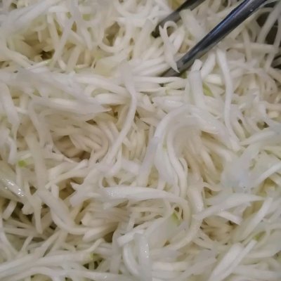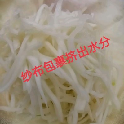 3、3、纱布包裹芥菜丝挤干水份。