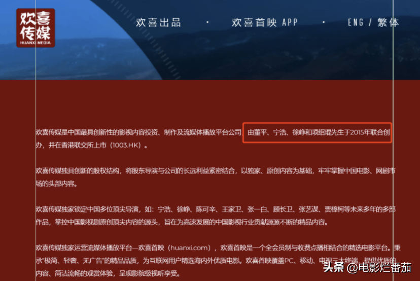 他将影片47.5%的票房收益权作价1.5亿卖给了21控股,随后,21控股上市,变成了今天的“欢喜传媒”。