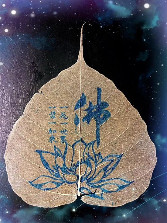 每种树都有其自身的寓意,叶脉艺术的意境亦由此而萌动与生发。六祖惠能说:“菩提本无树,明镜亦非台,本来无一物,何处惹尘埃。”菩提意为顿悟与智慧,寓指豁然开悟、通彻真理的澄明境界。古印度高僧以菩提叶制成梵夹,于之上书写经文鸿制,阐述博大精深的佛法义理。入手清风翻贝叶,印心明月证菩提。唐高僧玄奘法师历经西行险阻请回镌刻于贝多罗叶片上的《贝叶经》,已有两千余年的历史积淀。穿越千年的时空,《贝叶经》涵隐光华于古雅,其静穆与深邃昭示着无与伦比的思想价值与旷世意义。