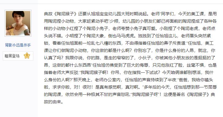 从中我们了解到,这是源于旭旭宝宝在幼儿园大班的时候发生的一段故事,而事实是否如此却有待考究,毕竟那个时候的旭旭宝宝还没有名气,怎么可能会有人去关注呢?另外这怎么看都像是一个杜撰的故事,接下来我们看另外一个!