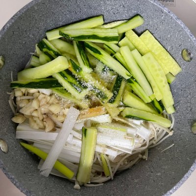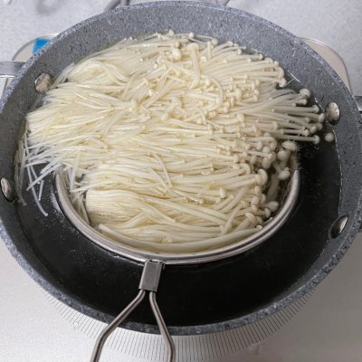 3、3、金针菇捞熟滤水;