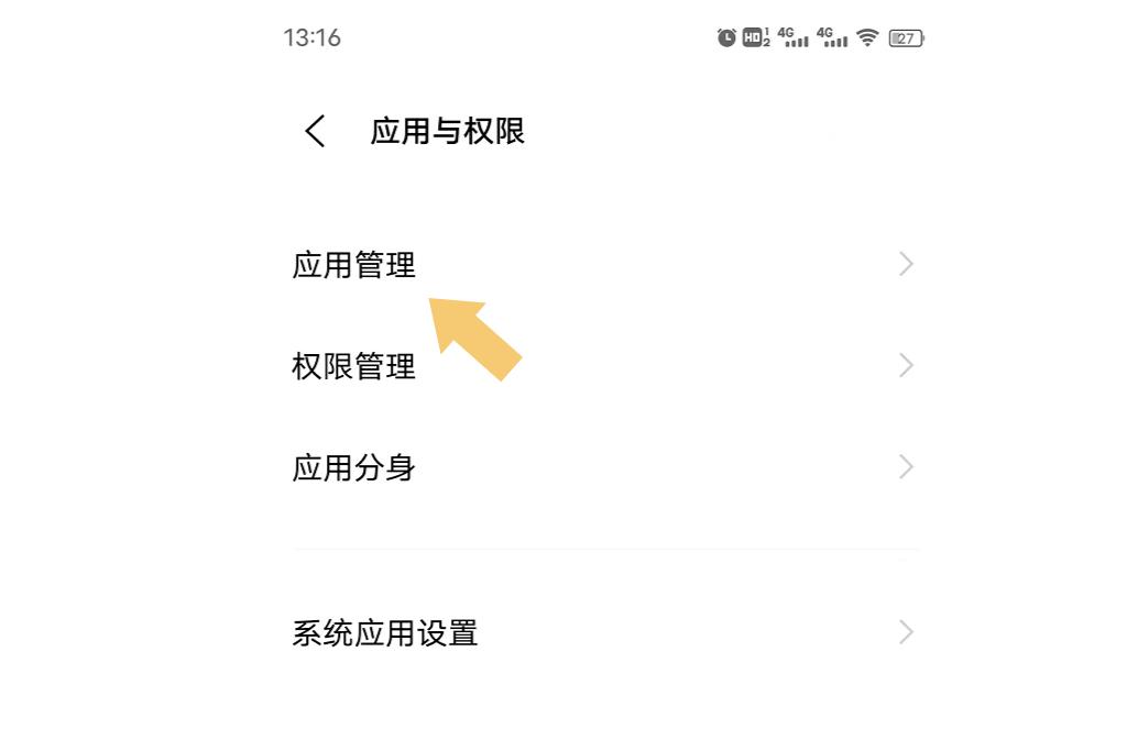 点击打开“应用与权限”选项,找到“应用管理”选项。如下图: