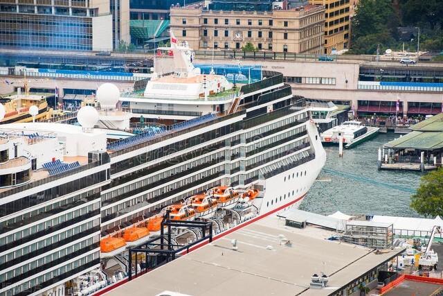 当邮轮停靠在港口时,乘客可以上岸观光或者购物。