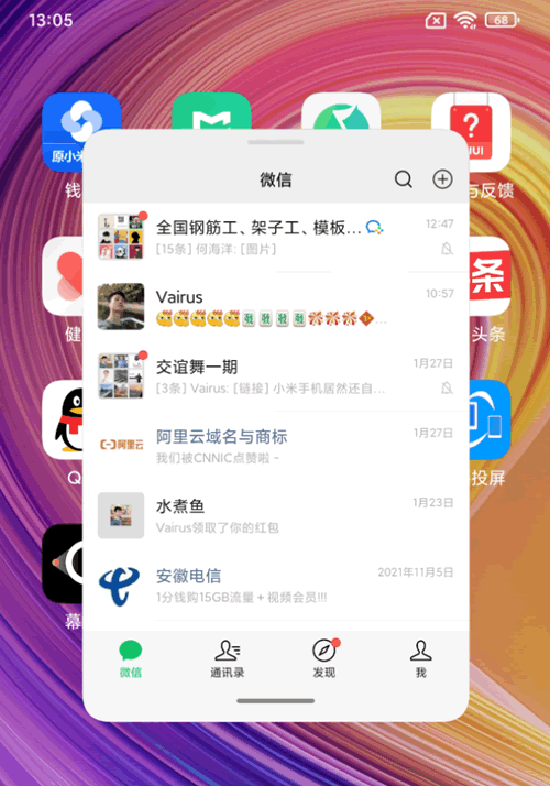 三、长按后台应用,开启小窗口。