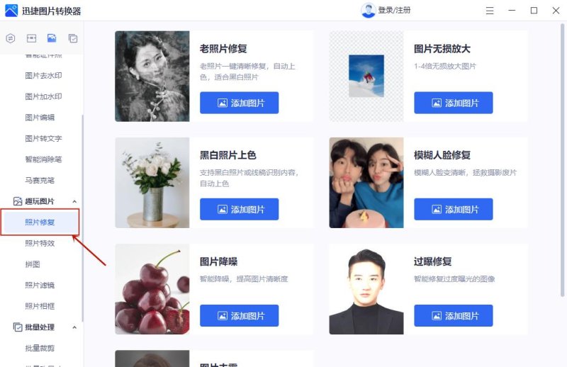 有的小伙伴会问,那要是实在找不到原版、高清的图片了怎么办?别着急,这个时候用迅捷图片转换器的照片修复功能,将图片上传并进行修复图片的画质、增强图像效果,即可得到清晰、完整的图片了。