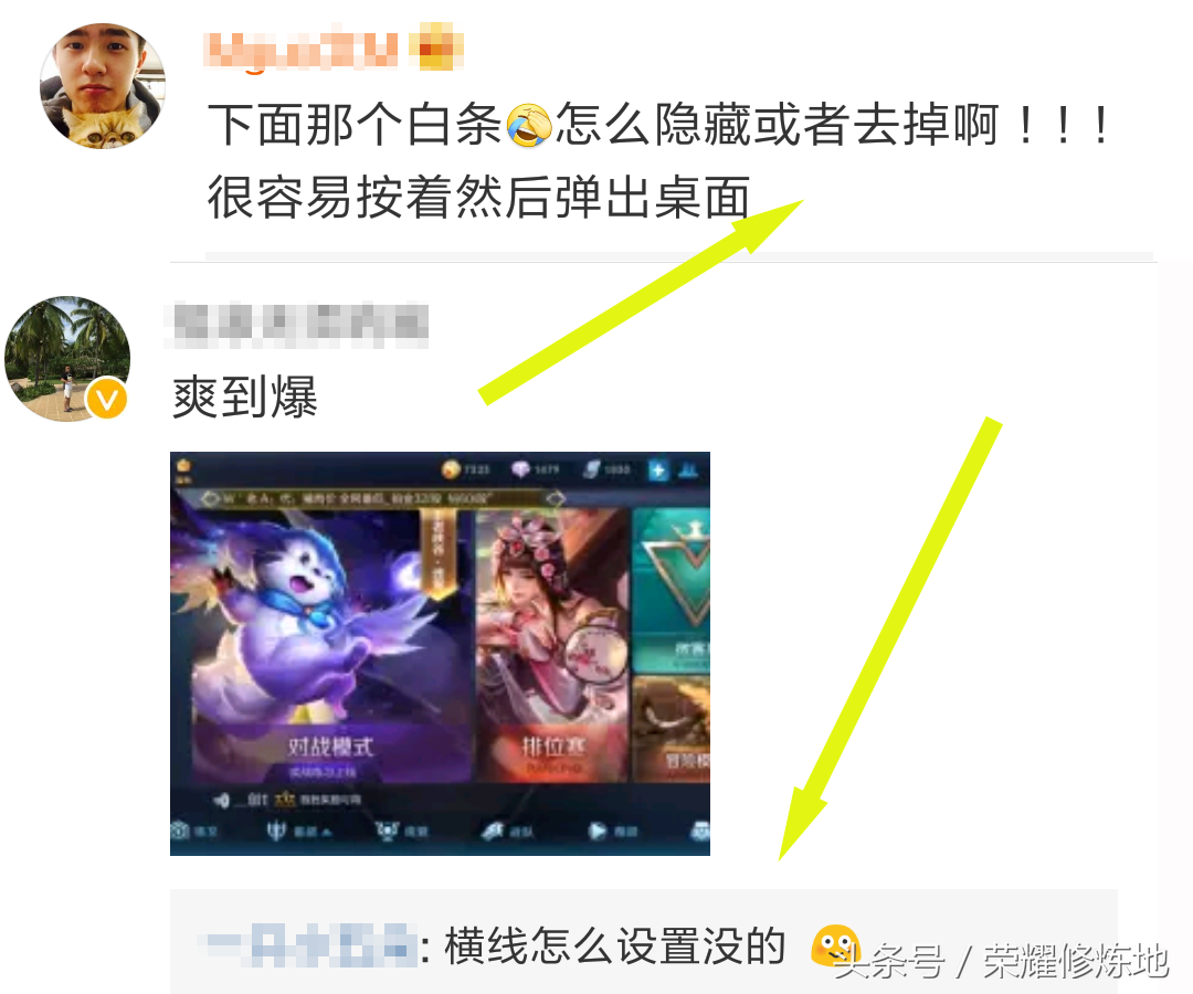 虽然黑框解决了,但是下面的白条很多玩家还不知道怎么取消,甚至有玩家游戏中点回程、恢复的时候输出误触到了白条,导致一局游戏数次返回桌面。