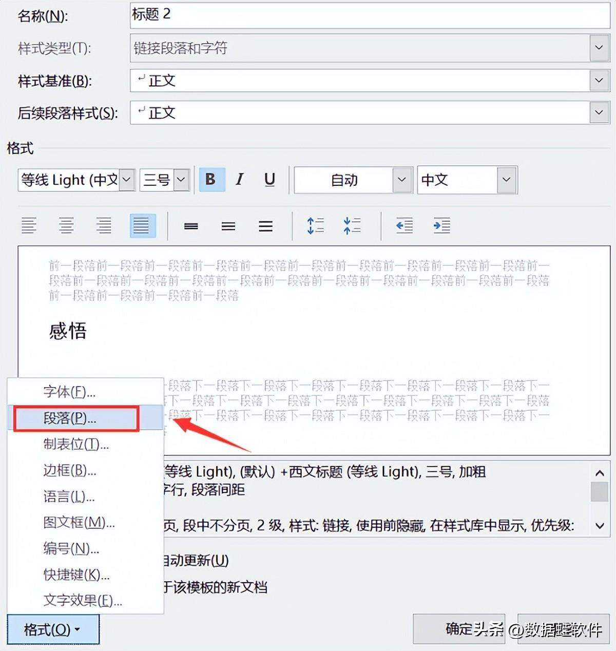在Word文档中,也可以通过设置样式来统一设置一组段落的行距,如果我们要将不同层级的文字设置不同的行距,可以按下方操作进行: