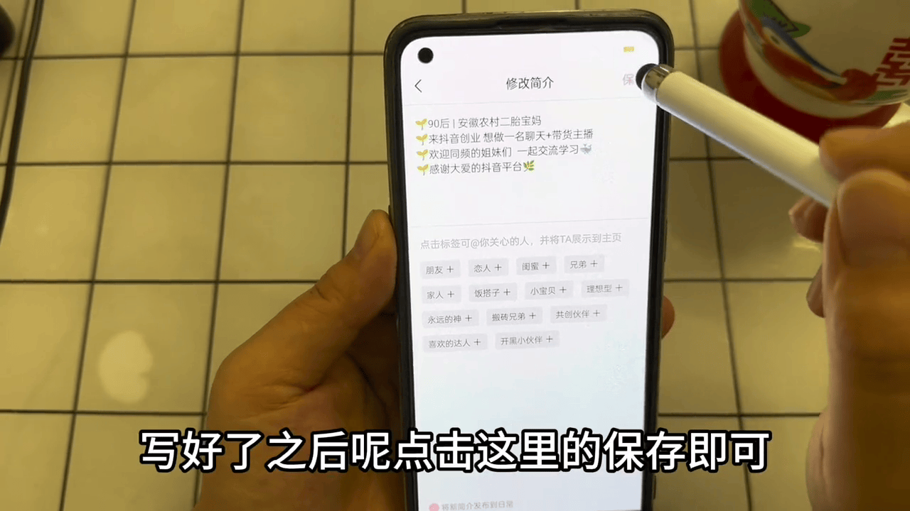 ·这边就可以修改个人简介,同样是点击进去,把你想写的内容写一写,注意在这里千万不要写一些违规的内容,写好了之后点击这里的保存即可。