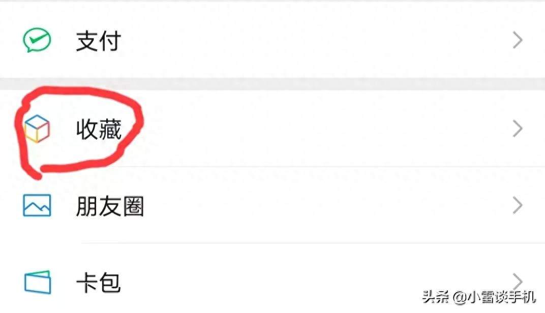 (“支付”按钮下方),进入微信的收藏界面。