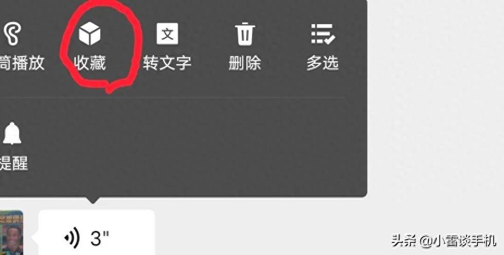 3、在收藏中,找到你需要转发的语音,直接点进去,先点右上角的三个点。