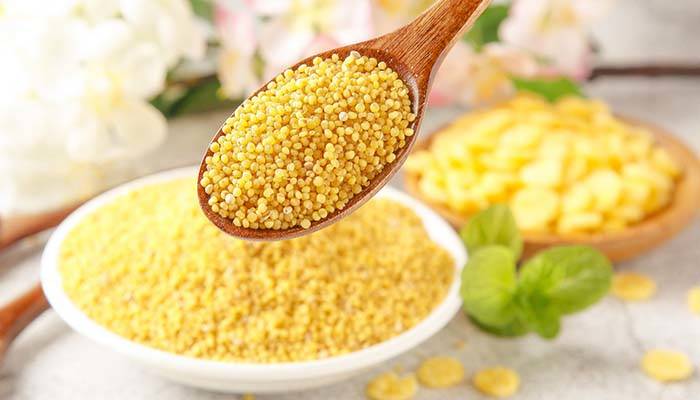 1.小米中含有大量的营养物质,每100克小米含蛋白质9.7克;脂肪1.7克,碳水化合物76.1克;