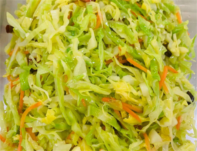 炝拌甘蓝:准备适量甘蓝切成细丝,用清水冲洗两遍,加入适量盐,翻拌均匀腌制一会儿。大概10分钟左右,橄榄已经出来很多水,把水分攥干放在一个盆子里面。加入适量辣椒面,蒜末白芝麻。锅里面烧热油,放入几粒花椒炸香,趁油热,倒在辣椒面和蒜末上面。再加入适量白糖搅拌均匀,好吃的炝拌甘蓝就做好了。可以多做一点装在保鲜盒里面放进冰箱,早餐的时候,配上粥吃起来口感是特别好的。