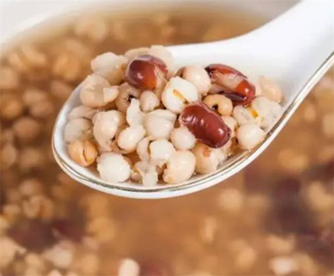 薏仁粥的做法也是特别简单,很多人应该都吃过。把50克薏米加上适量,小豆一起浸泡两个小时以上,然后在电饭锅里面加入适量清水,把泡好的薏米和小豆倒进去,按煮饭键慢慢熬住。煮开之后可以适量放入一点点食用碱,不但能激发薏仁粥的香气,还能让薏仁和小豆快速成熟。薏米仁和小豆煮熟煮烂就可以,不需要煮的特别粘稠,那样会降低薏米仁的效果。