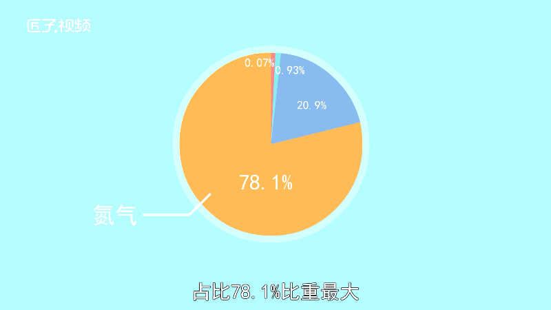 大气层的成分主要有氮气,占78.1%比重最大;氧气其次,占20.9%;氩气占0.93%;还有少量的二氧化碳、稀有气体(氦气、氖气、氩气、氪气、氙气、氡气)和水蒸气。