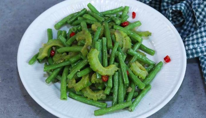 豆角苦瓜是一道用苦瓜和豆角炒制而成的菜肴,这道菜口味清淡,含有丰富的营养,老少皆宜!