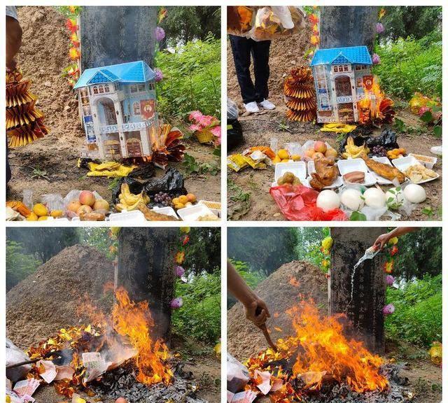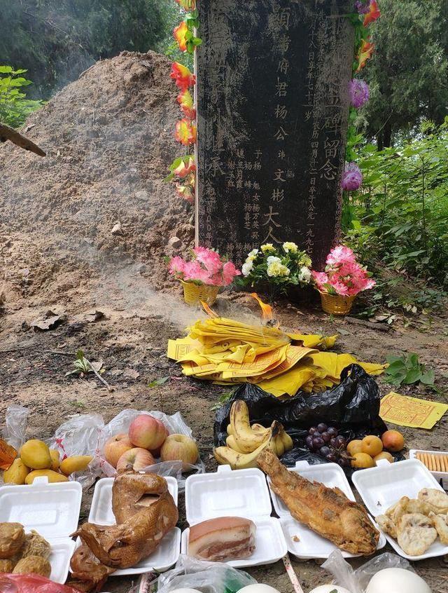 一些比较讲究的,还要在坟头供奉一杯酒,四个菜肴,需要有猪肉、鱼肉,豆腐青菜只额里的,还有一碗饭。