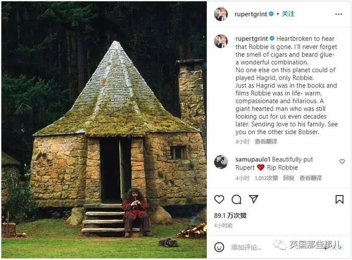 饰演哈利·波特的演员丹尼尔·拉德克里夫在Instagram分享了几张剧照,包括他和罗彼的合影,并悼念称,