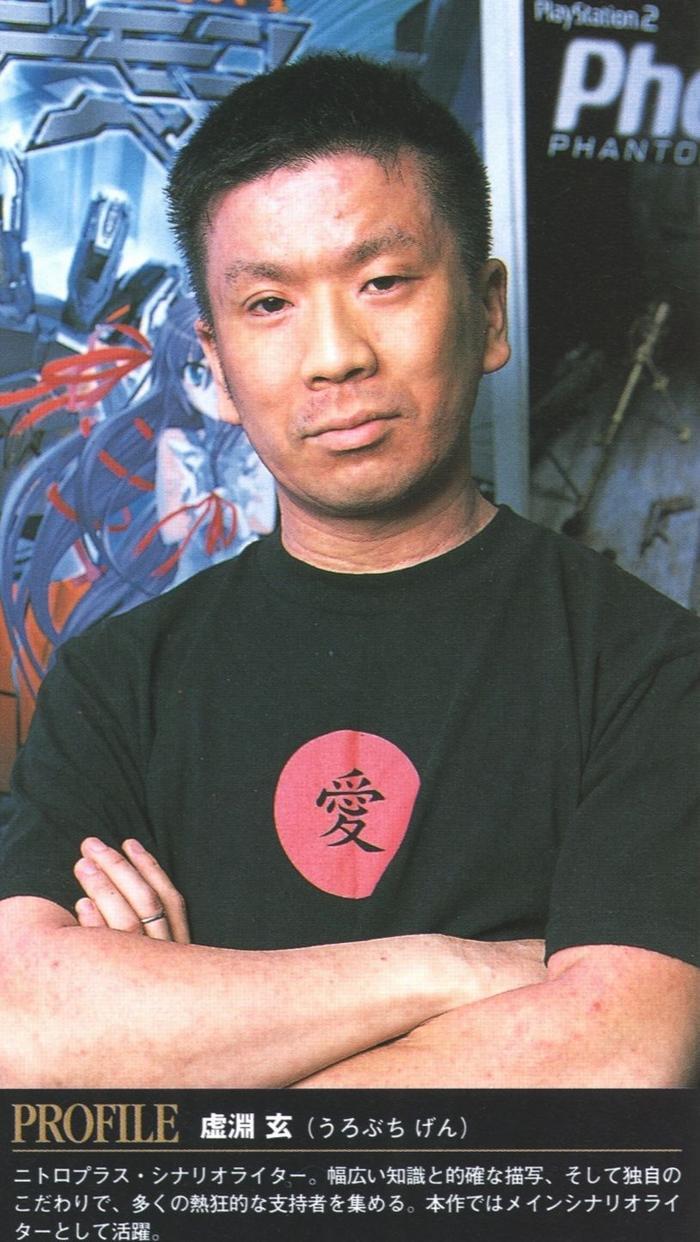 (虚渊玄,日本轻小说作者、动画片编剧,人称“爱的战士”,用充满爱(虐)意的故事治(致)愈(郁)了许多观众)