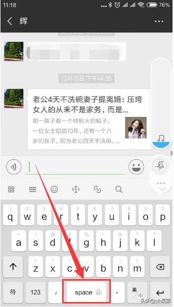 三、这时即可在输入栏内输入一个空格符(空格键轻点一下是输入空格符,长按为转为语音输入模式)。