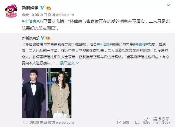 朴信惠方:“据与本人确认,朴信惠和崔泰俊从去年开始发展成了恋人,一直带着美好的感情见面,请大家用温暖的视线看待近日开始小心交往的两人。”