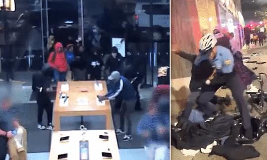 这次“快闪式洗劫”发生在本周二(当地时间9月26日),受害商店有数十家,包括Foot Locker、Lululemon以及苹果商店。