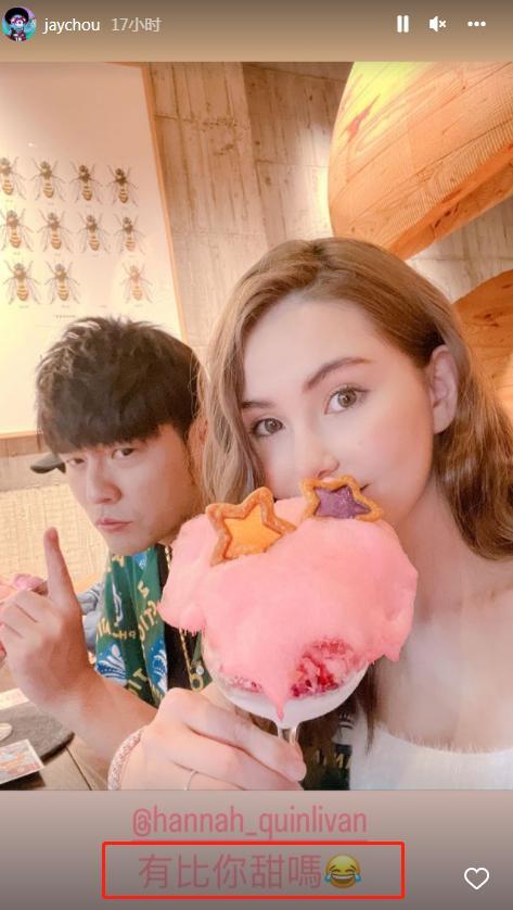 周杰伦晒夫妻合照,昆凌手拿甜品卖萌,周董大秀恩爱:有比你甜吗