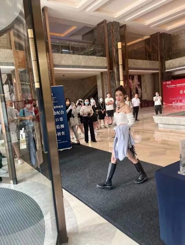 网友在酒店大堂偶遇Baby,化着浓妆扎小马尾,本人瘦成了一道闪电
