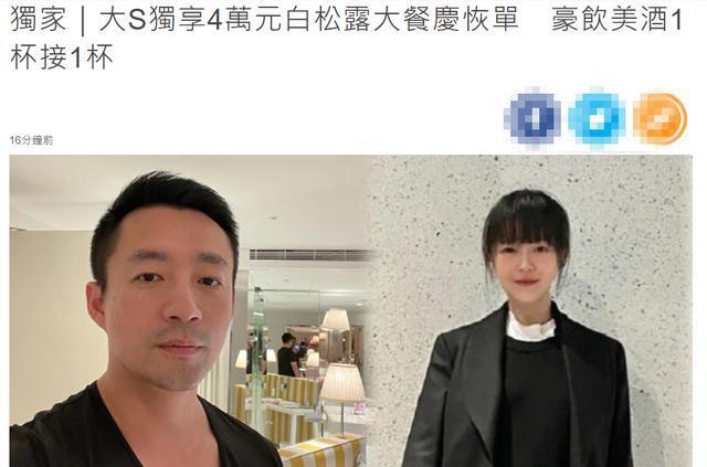 台媒曝大S独享万元白松露大餐庆单身,喝六七杯美酒一点都不悲伤