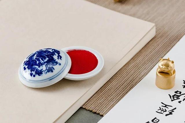 还专门配备西泠印社的小青花朱砂印泥,制法考究,质地细腻。