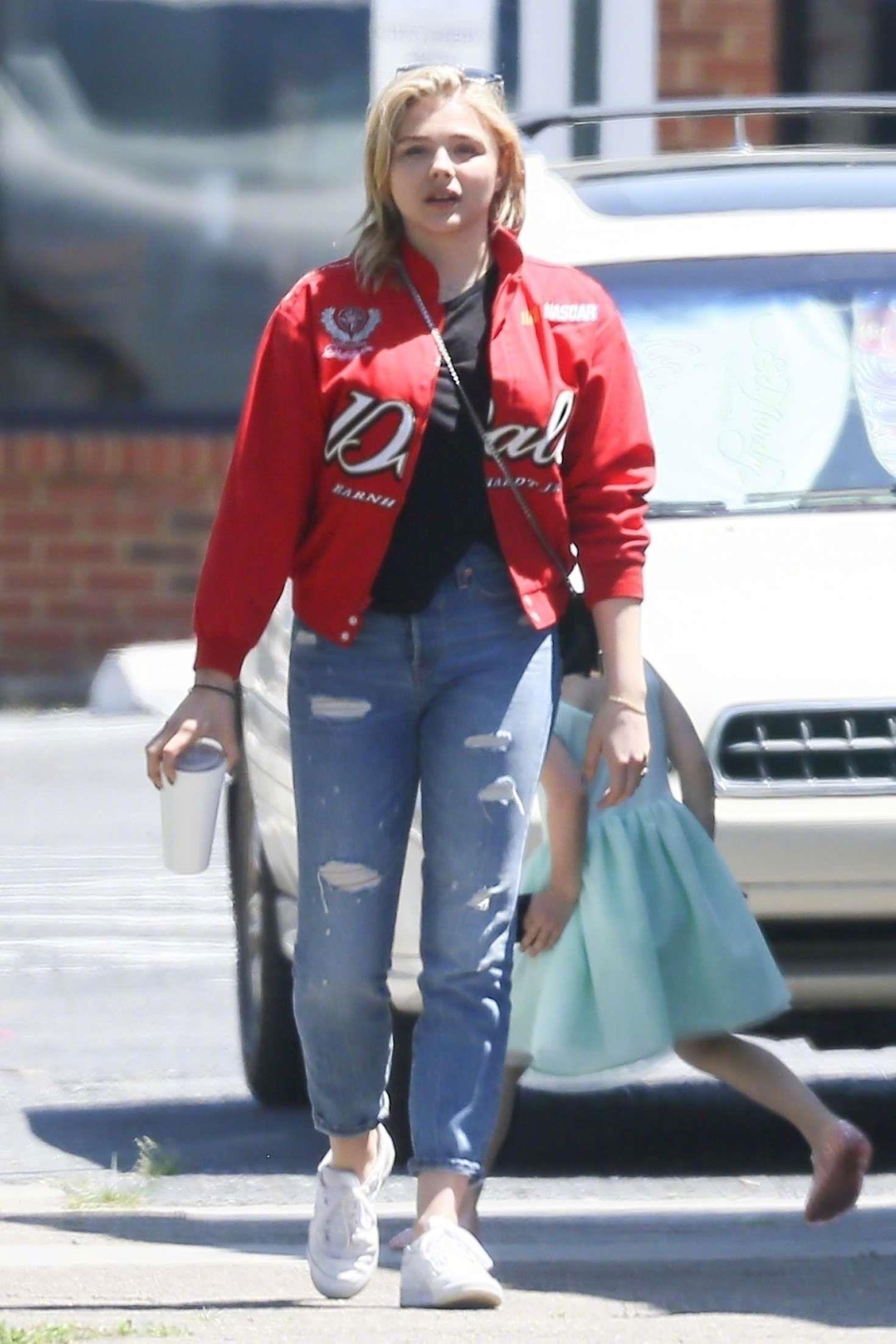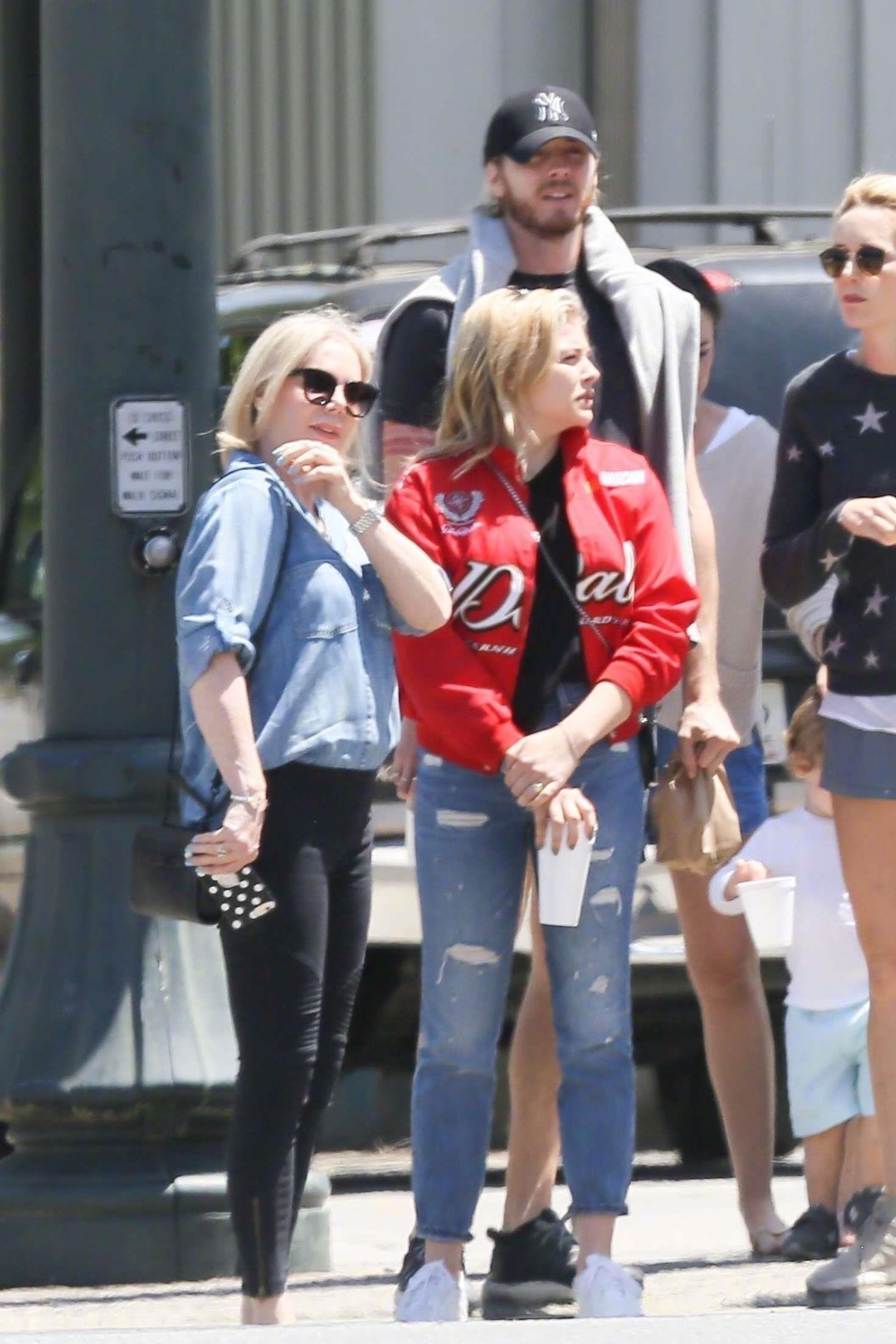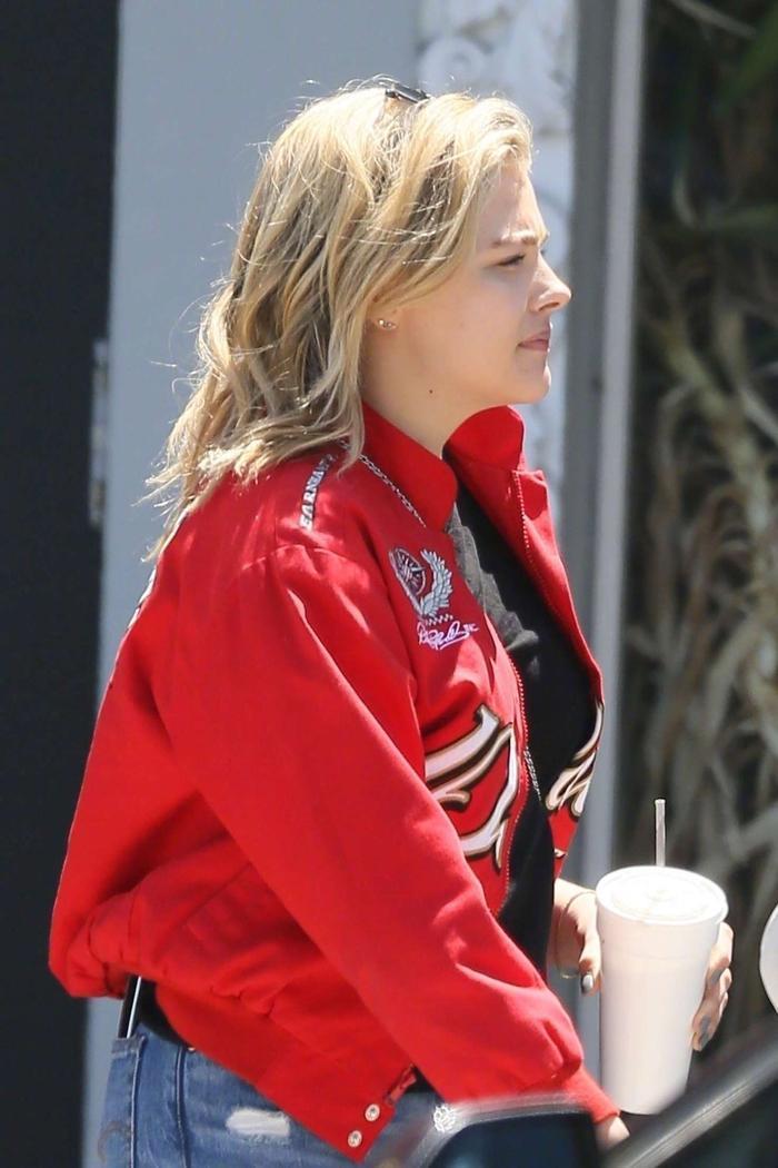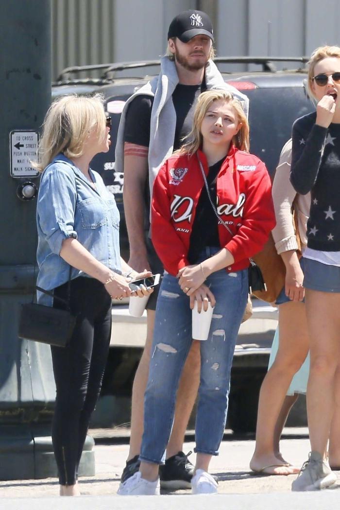 科洛Chloe Moretz 身穿她的红色外套 和妈妈还有哥哥们在罗马游玩被怕