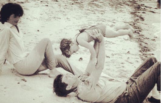 图为肯尼迪夫妇和儿女在沙滩上。