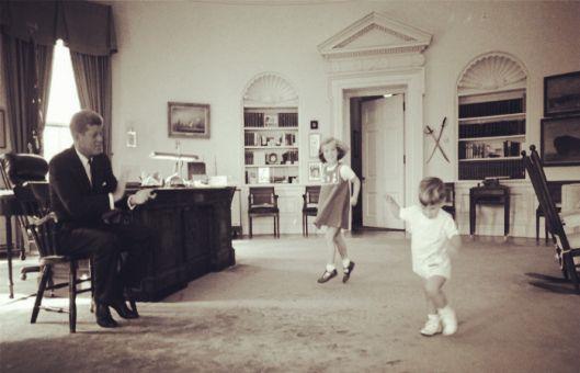 图为肯尼迪总统和儿子、女儿。