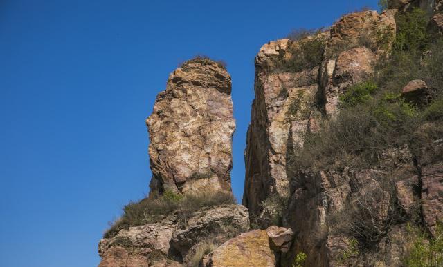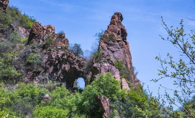 旁边还有一座高高耸立的山峰,擎天而立,像热恋期的情人,在情人石旁边有一圆洞,我们就叫他“月老洞”吧!这是他们坚贞不渝爱情的又一见证。每当夜深人静的时候,皎洁的月光透过圆洞普照在山野间,更增添许多神秘的色彩。