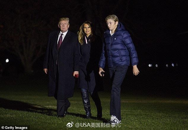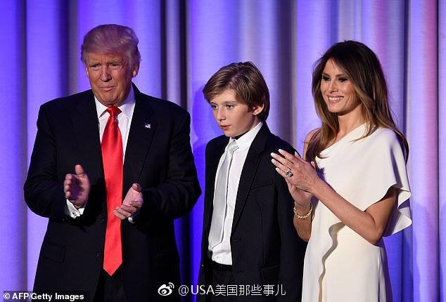 川普与梅拉尼娅生的独子拜伦,刚刚12岁,但身高已经快一米九了
