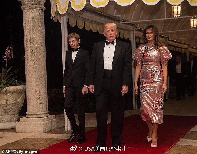 川普与梅拉尼娅生的独子拜伦,刚刚12岁,但身高已经快一米九了。跨年夜还跟妈妈一起出席了派对,穿着一身黑色燕尾服。