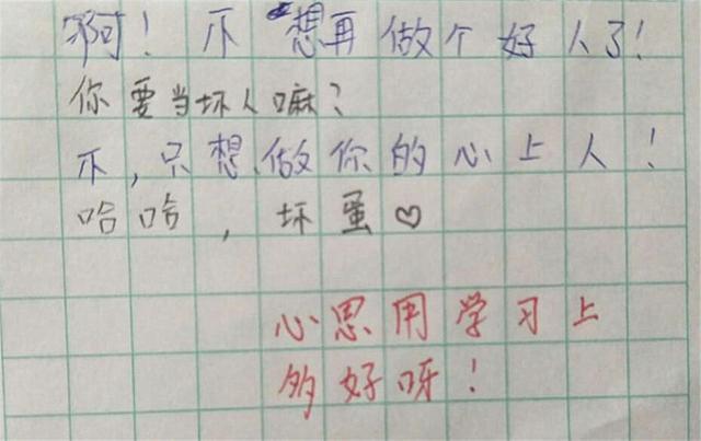 是这名老师批改作业时无意看到的,看到自己班上的小学生居然有了早恋的苗头,这位老师感觉很新奇的同时也有点发愁。