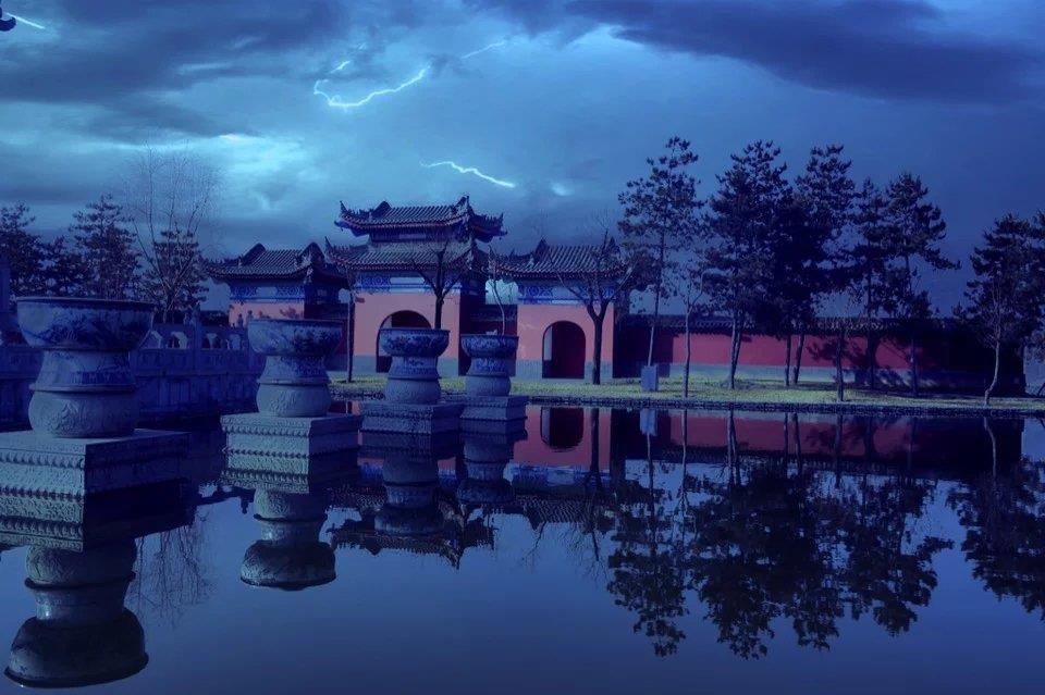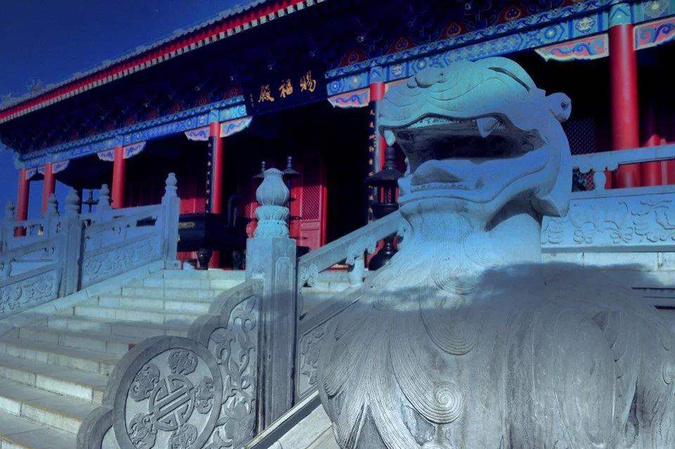 赵公明财神庙是西安境内最为气势恢弘的庙宇,距离西安市约一个多小时车程,为楼观台道文化景区的重要组成部分之一,它位于周至县集贤镇赵代村,而这个赵代村就是财神赵公明的故里。整个赵公明财神庙的核心建筑有院落式三进财神殿,包括赐福殿、财神殿和三霄殿。通过滤镜修图之后,赵公明财神庙多了几分诡异之感,但依旧不失恢弘大气。(运用人员/子卫)