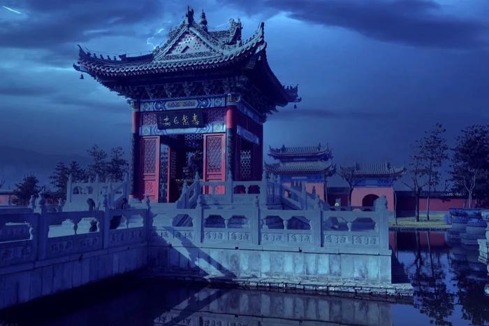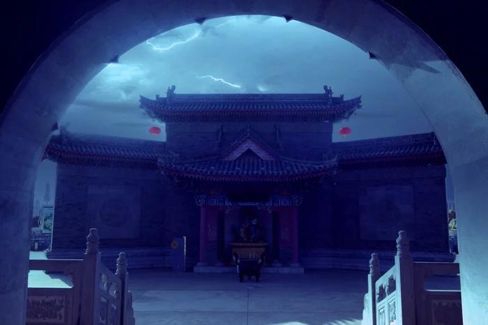 滤镜下的周至赵公明财神庙,多了几分诡异,但依旧不失恢弘大气
