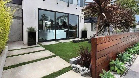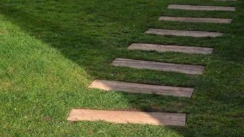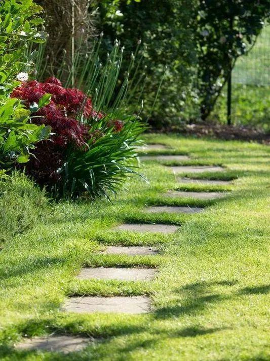 在狭长的空间中布置汀步,与草地自然的融为一体,整个空间看起来便不至于太拥挤。