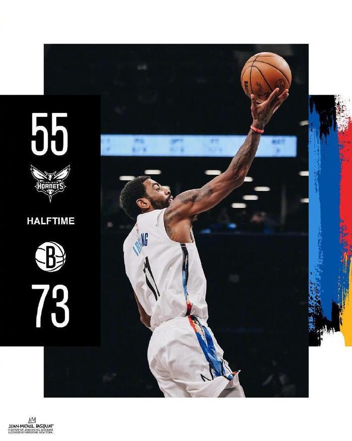 随后篮网依旧掌握着场上主动,进一步将比分拉开到20分以上。黄蜂在场上并没有太多办法,外线手感依旧不佳,只有靠着冲击篮下得到一些分数。上半场结束篮网73-55领先黄蜂,篮网的73分是本赛季半场最高得分。