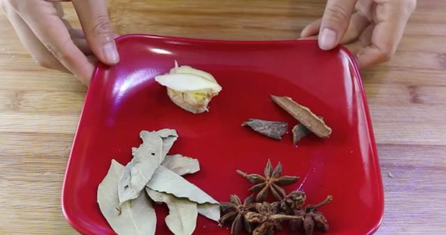 3、在我们平时的生活中,很多人吃蒜苔的时候尾部都是不要的,其实尾部也是可以吃的,所以说不要丢掉,先放到一旁待用。再准备适量的桂皮,八角,香叶和生姜,将生姜清洗干净,然后去掉外皮,再切成薄片。然后将它们放到锅中边炒出香味,锅中是不需要放油的,直接加进这些调味料进行煸炒就行了,只不过是在炒的过程中要快速地翻动,防止他们糊锅,炒出香味之后,再加入130克左右的生抽,130克左右的陈醋和30克的老抽,再加30克白糖。烧开之后不停的搅拌,再煮两分钟,然后将汤汁倒入碗中冷却。